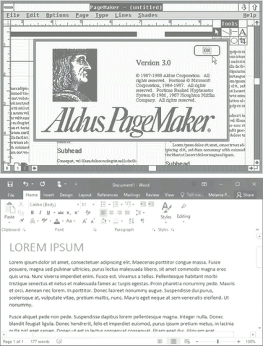 Aldus Corporation, which later merged with Adobe Systems, ushered lorem ipsum into the information age with its desktop publishing software Aldus PageMaker. The program came bundled with lorem ipsum dummy text for laying out page content, and other word processors like Microsoft Word followed suit. More recently the growth of web design has helped proliferate lorem ipsum across the internet as a placeholder for future text—and in some cases the final content (this is why we proofread, kids).