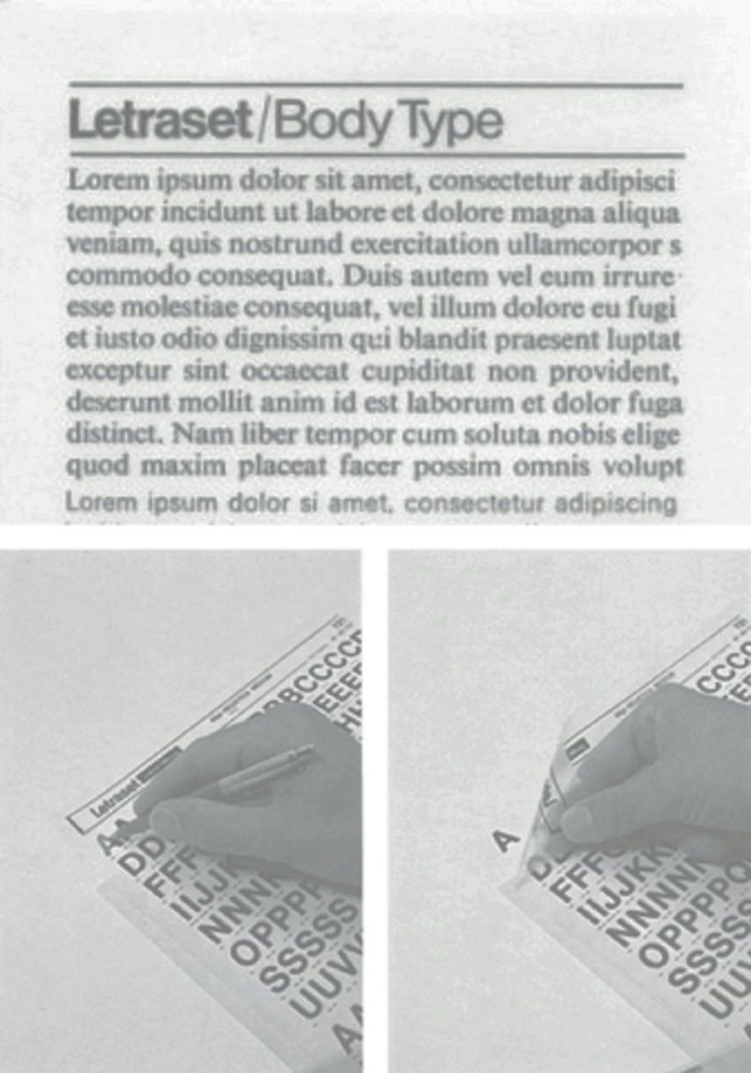 The French lettering company Letraset manufactured a set of dry-transfer sheets which included the lorem ipsum filler text in a variety of fonts, sizes, and layouts. These sheets of lettering could be rubbed on anywhere and were quickly adopted by graphic artists, printers, architects, and advertisers for their professional look and ease of use.